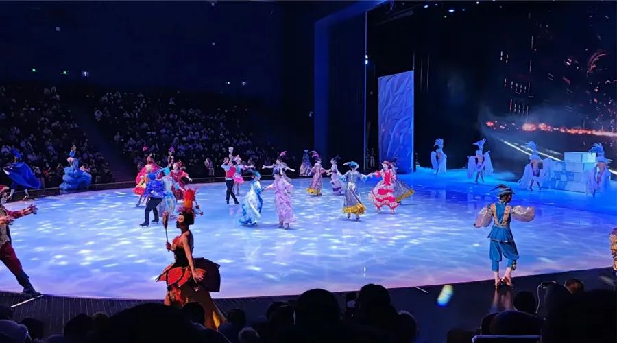 建筑面積1.13萬平方米,包含500平米的冰面舞臺和后舞臺,以及可容納1900人同時就坐的觀演大廳。在這里,“小土豆”們可以觀賞到來自12個國家的50位優(yōu)秀演員演藝花樣滑冰、馬戲、雜技、舞蹈等劇目,充分展現(xiàn)哈爾濱城市深厚的冰雪文化底蘊。