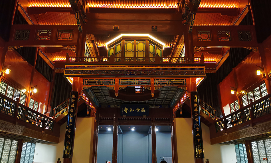 戲樓內(nèi)聲光電建設(shè)同樣值得期待。基于本項(xiàng)目的特殊情況,如何在市級(jí)古文物建筑上進(jìn)行燈光音視頻系統(tǒng)改造并達(dá)到既定效果顯得尤為重要,仁歌技術(shù)團(tuán)隊(duì)將音響系統(tǒng)、燈光系統(tǒng)、舞臺(tái)機(jī)械控制系統(tǒng)進(jìn)行“隱身式”布置,實(shí)現(xiàn)了古韻之美的戲臺(tái)與現(xiàn)代聲光電技術(shù)的完美融合,系統(tǒng)配置均達(dá)到了國(guó)家標(biāo)準(zhǔn)并符合戲劇演出需求,讓來到現(xiàn)場(chǎng)的每一位觀眾體驗(yàn)沉浸式演藝。